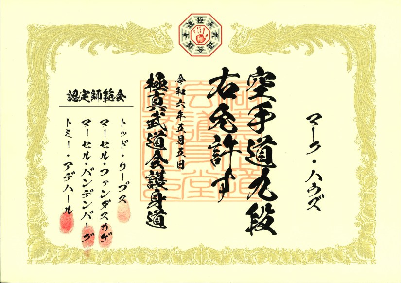 Hanshi Marc Howes received his Kudan (9th Dan 九段) on 5th May2024 at the Combination Seminar, Bonn, Germany
