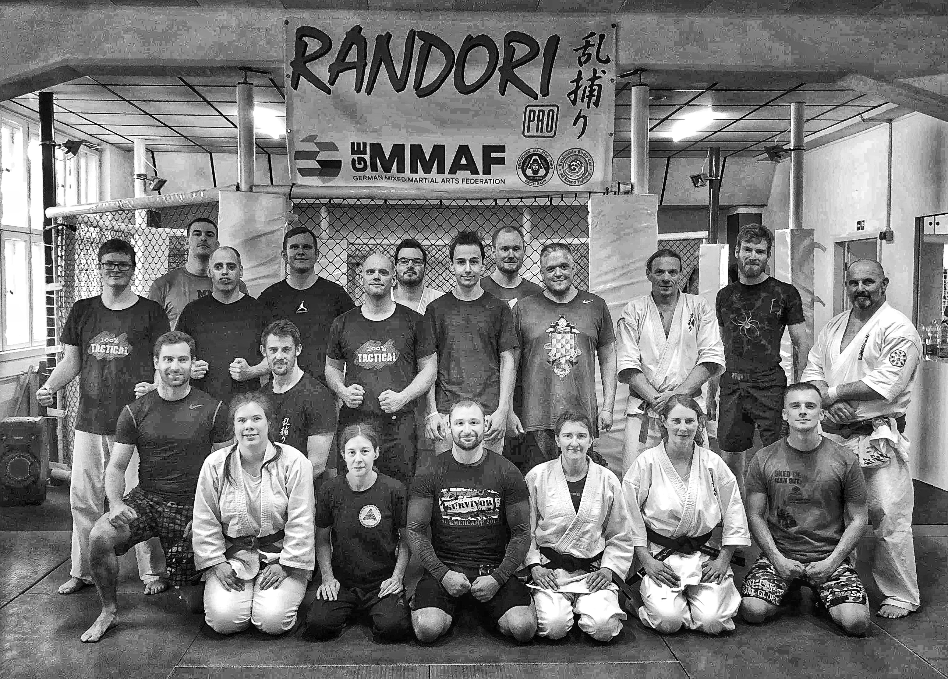 Instructors: L-RSoke Marcel Vanderschaeghe, Shihan Tommy Odaiko, Hanshi Marc Howes, (cut-out) Shihan ToddReeves, Shihan Marcel van de BergShihan Tommy Odaiko holding pads for Hanshi Marc Howes who is demonstrating shotei strikes22/7/21–Welsh KUDO Representatives@ the Jigoku Dojo
