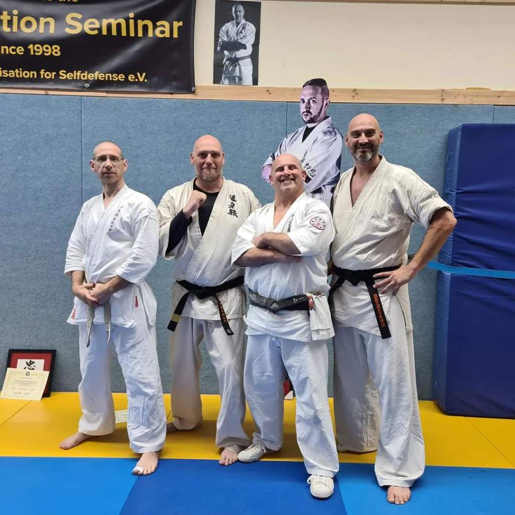 Sensei Roli Muller, Sensei Eva-Rebecca Muller-Machler, Hanshi Marc, and Soke Marcel Vanderschaeghe
